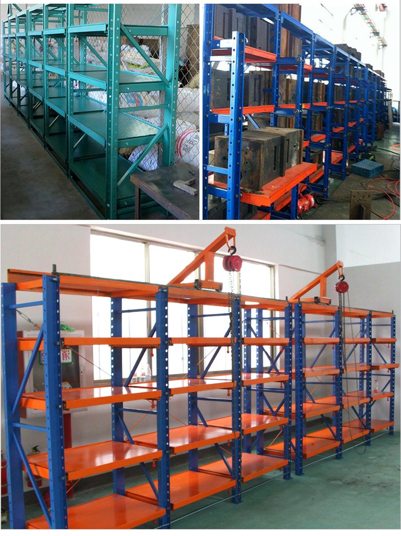 模具货架适合于存放模具等机械加工块的存放。占地少、承重大、分类详细、存取方便。抽屉式滑道,可以80%抽出,操作简易,安全,是现代化工厂的维修及加工车间的工位器具。